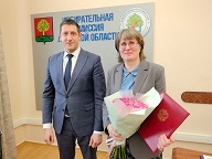 Сегодня председатель избирательной комиссии Липецкой области Сергей Владимирович Елманов вручил ведущему консультанту информационного центра аппарата избирательной комиссии Липецкой области Ирине Борисовне Рукавцовой Почетную грамоту Центральной избирательной комиссии Российской Федерации.